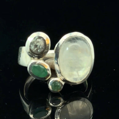 Кольцо Лунный камень( одуляр),алмаз 19 размер 12,2 гр; серебро 925;