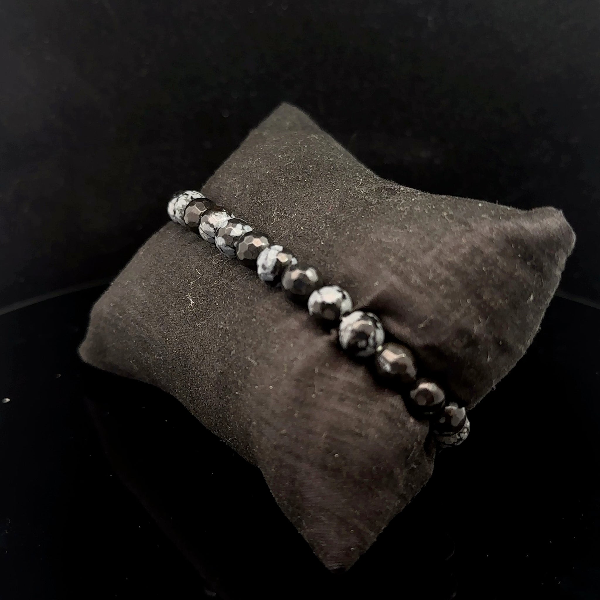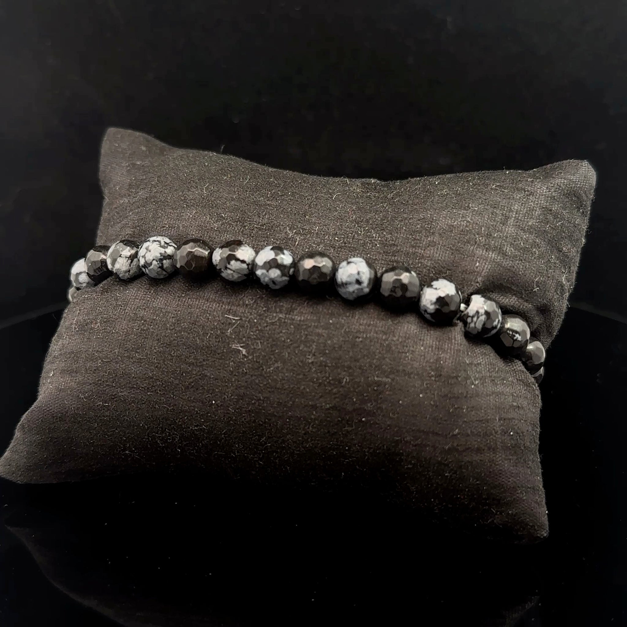 Браслет Обсидиан бусины 6 мм , граненые 30 шт