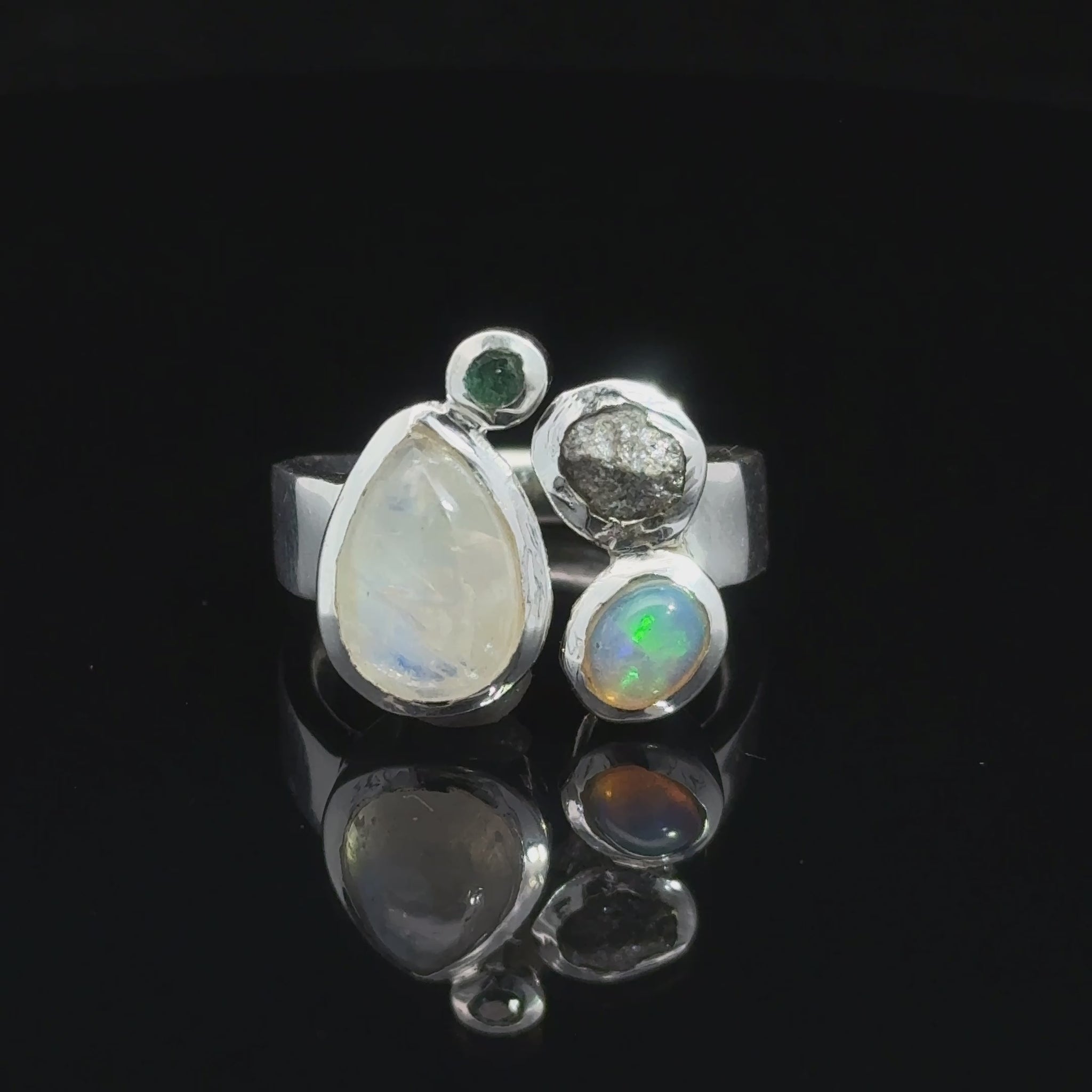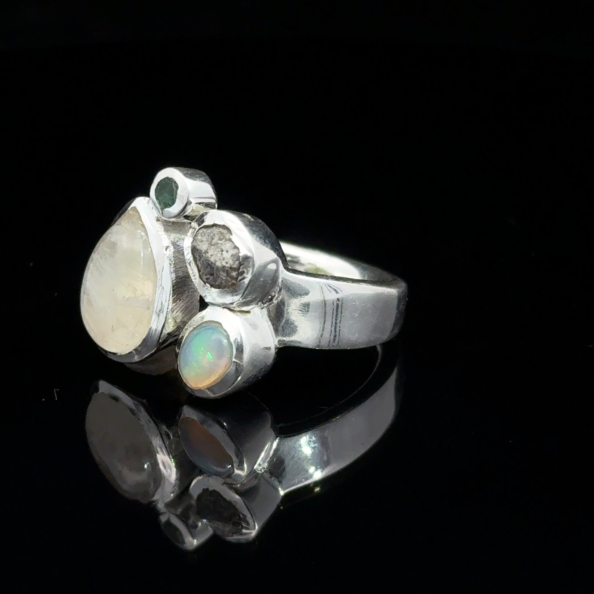 Кольцо Одуляр( лунный камень) опал, алмаз размер ; серебро 925