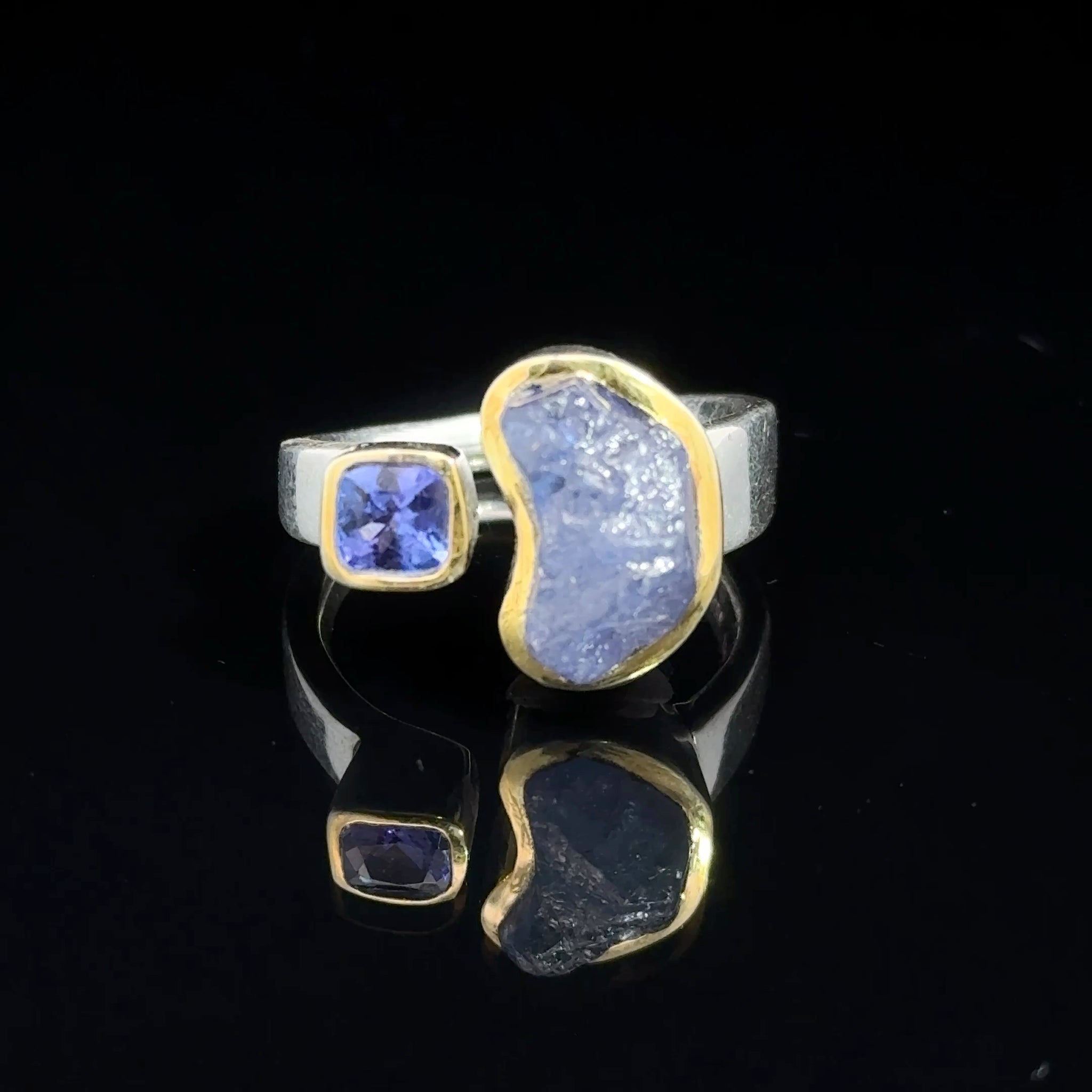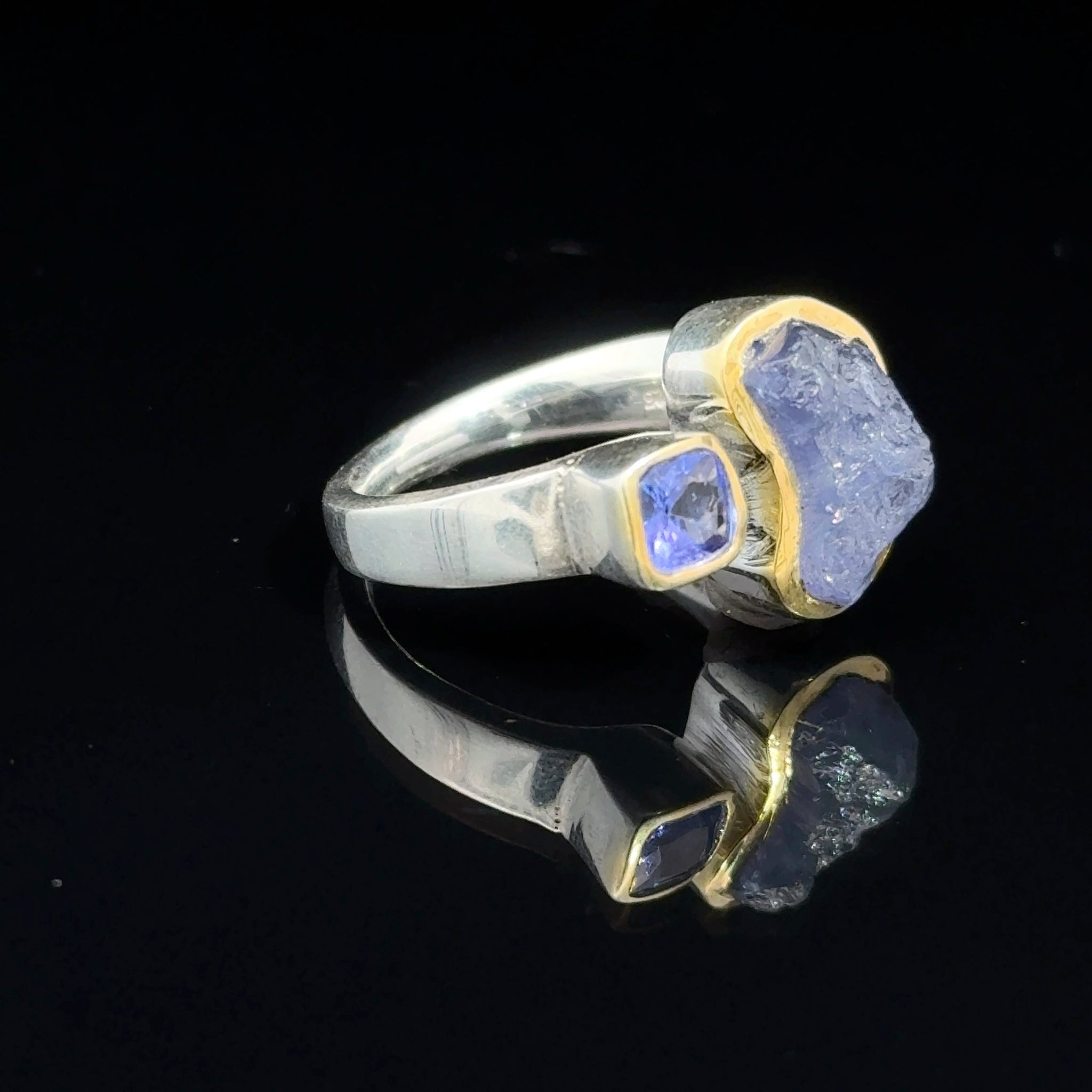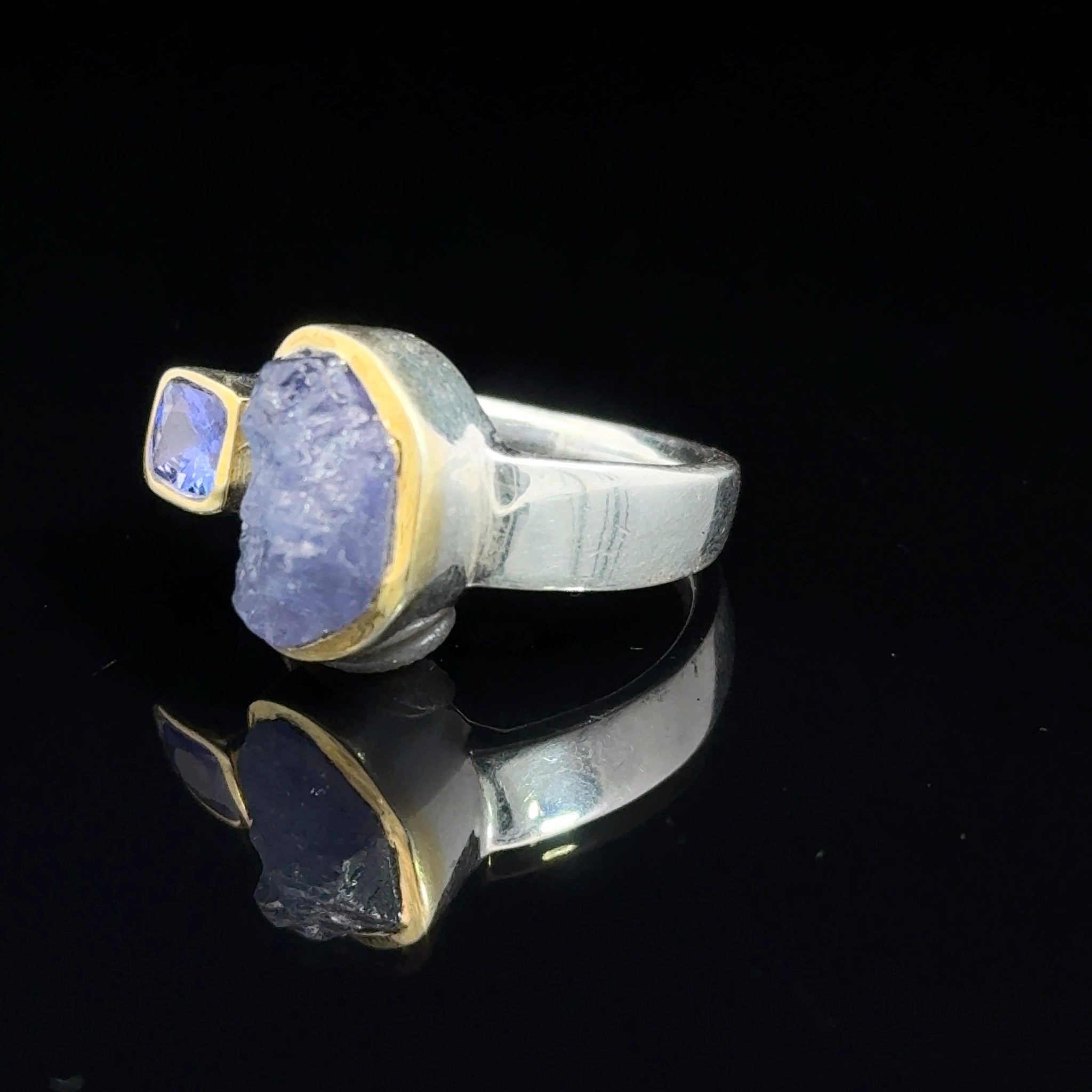 Кольцо Танзанит дикий и обработанный размер; серебро 925