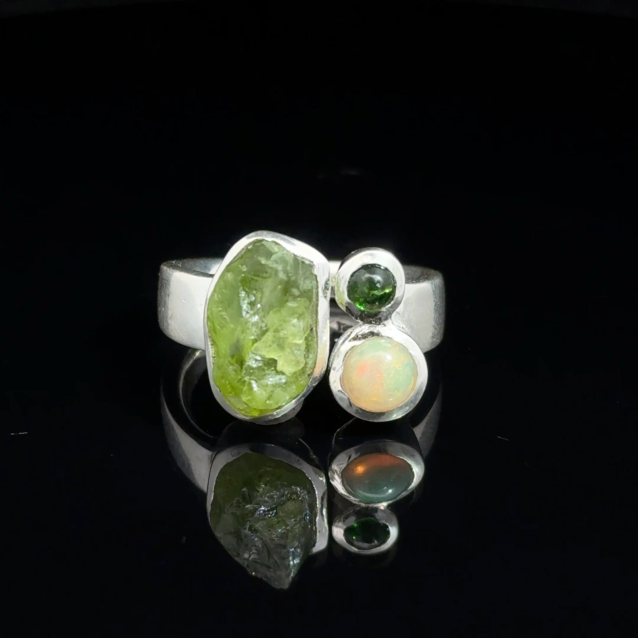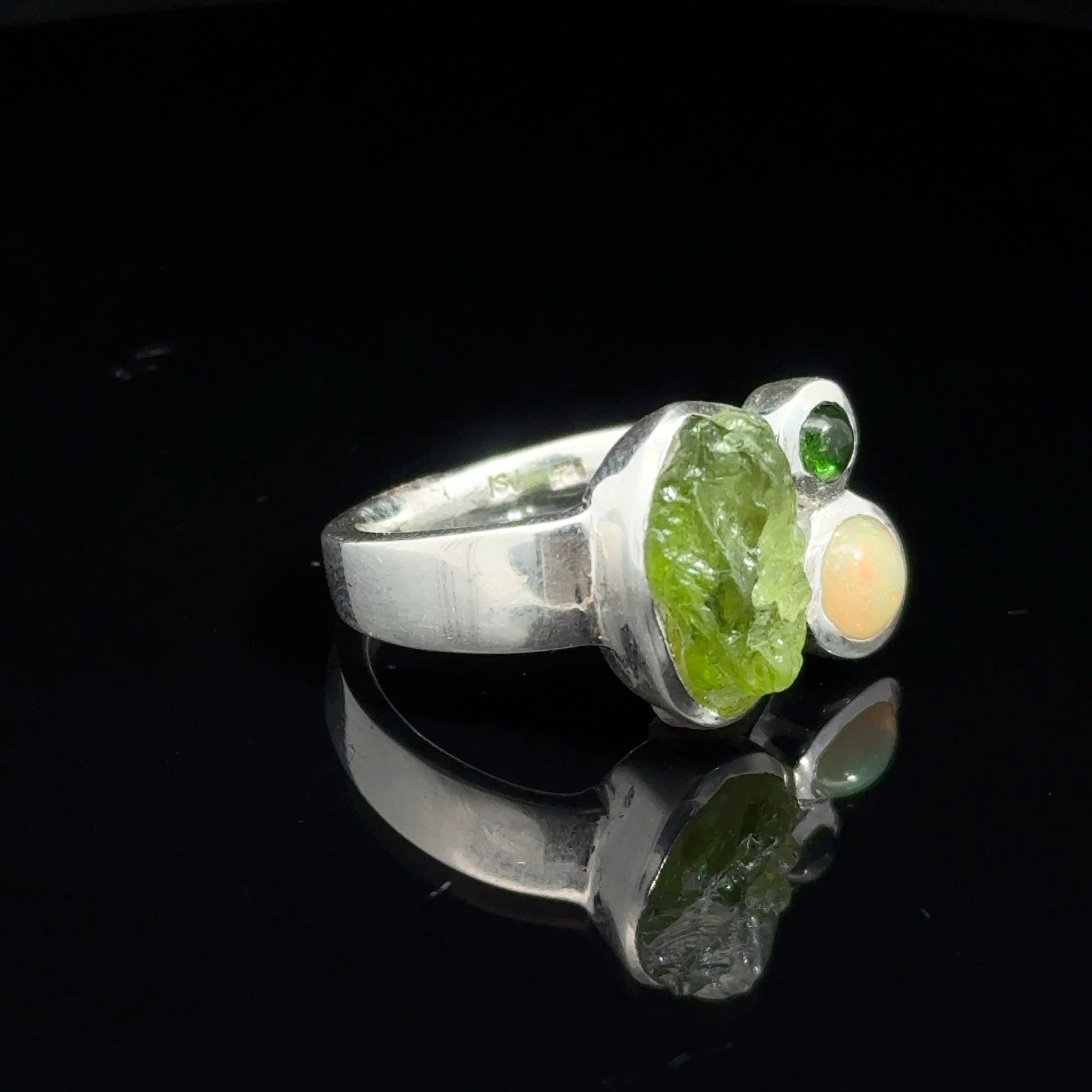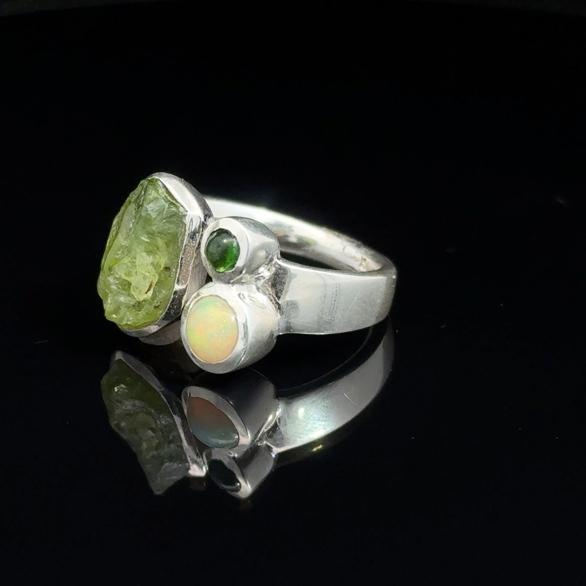 Кольцо хризолит, опал размер; серебро 925