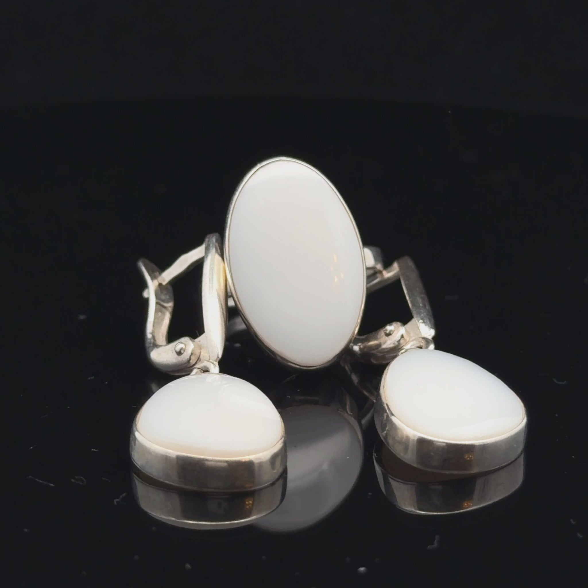 Комплект Кахолонг кольцо 15,5 размер, серьги 3 см ; серебро 925