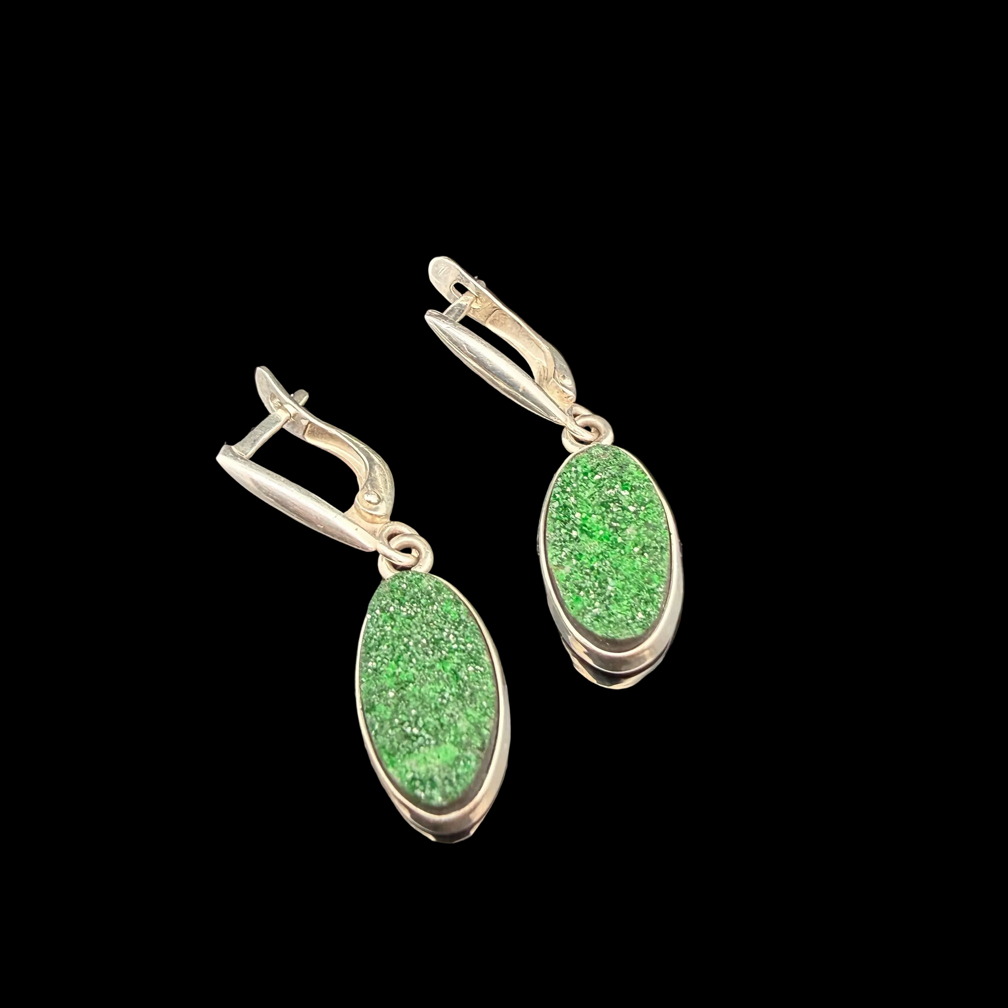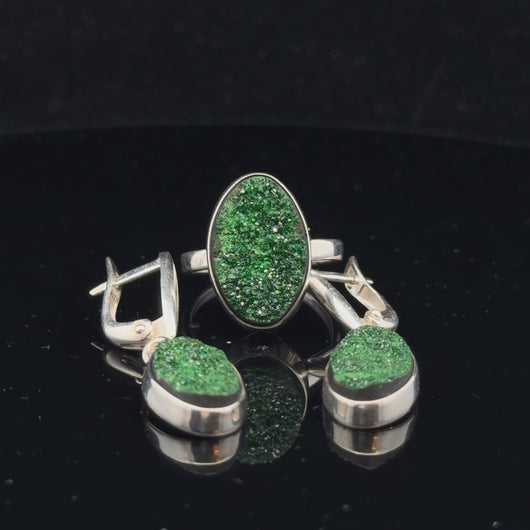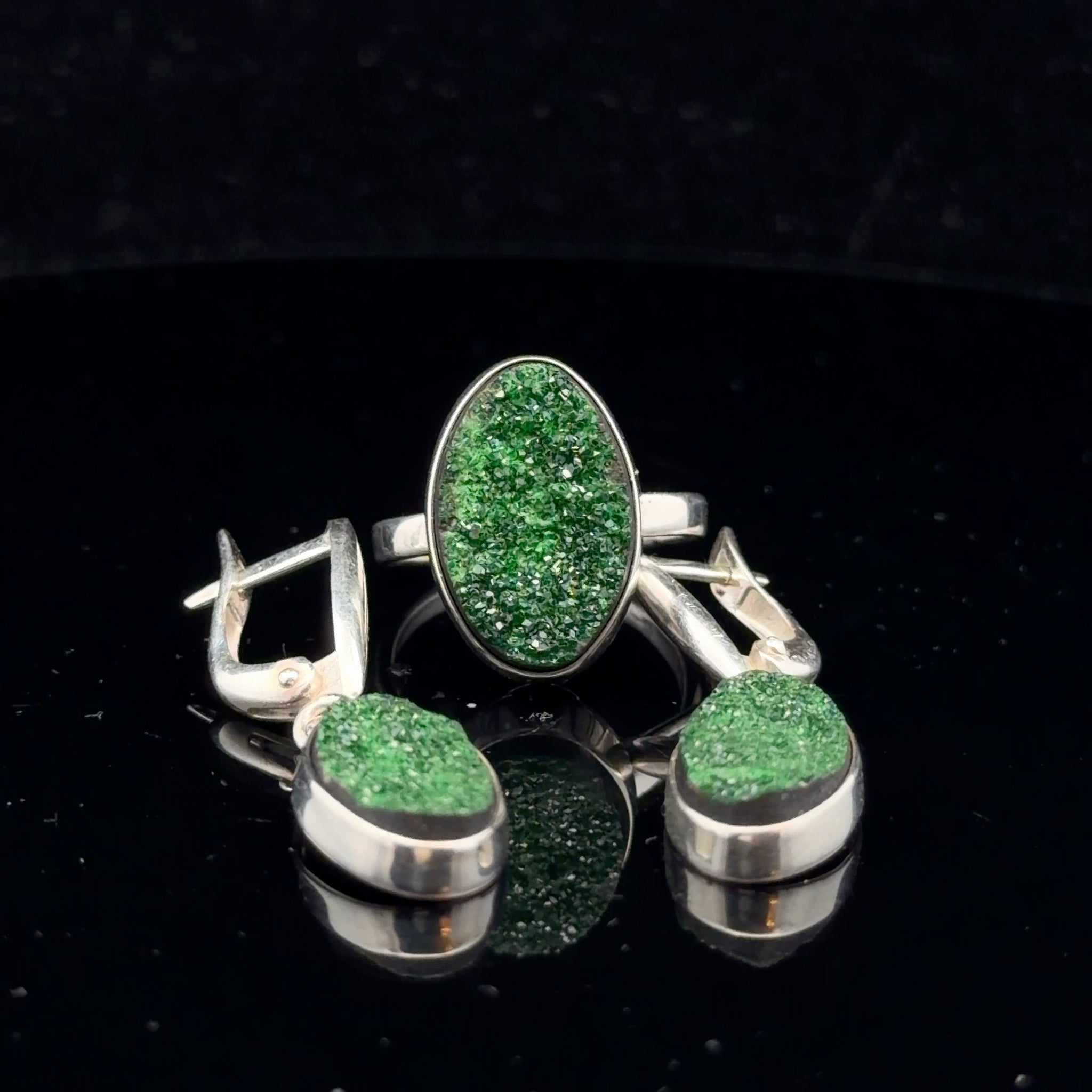 Комплект Уваровит, кольцо 16,5 размер, серьги 4 см ; серебро 925