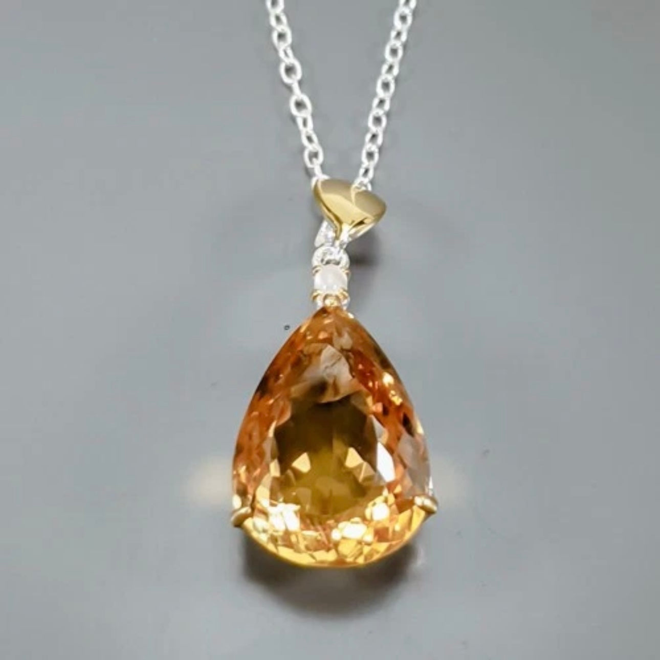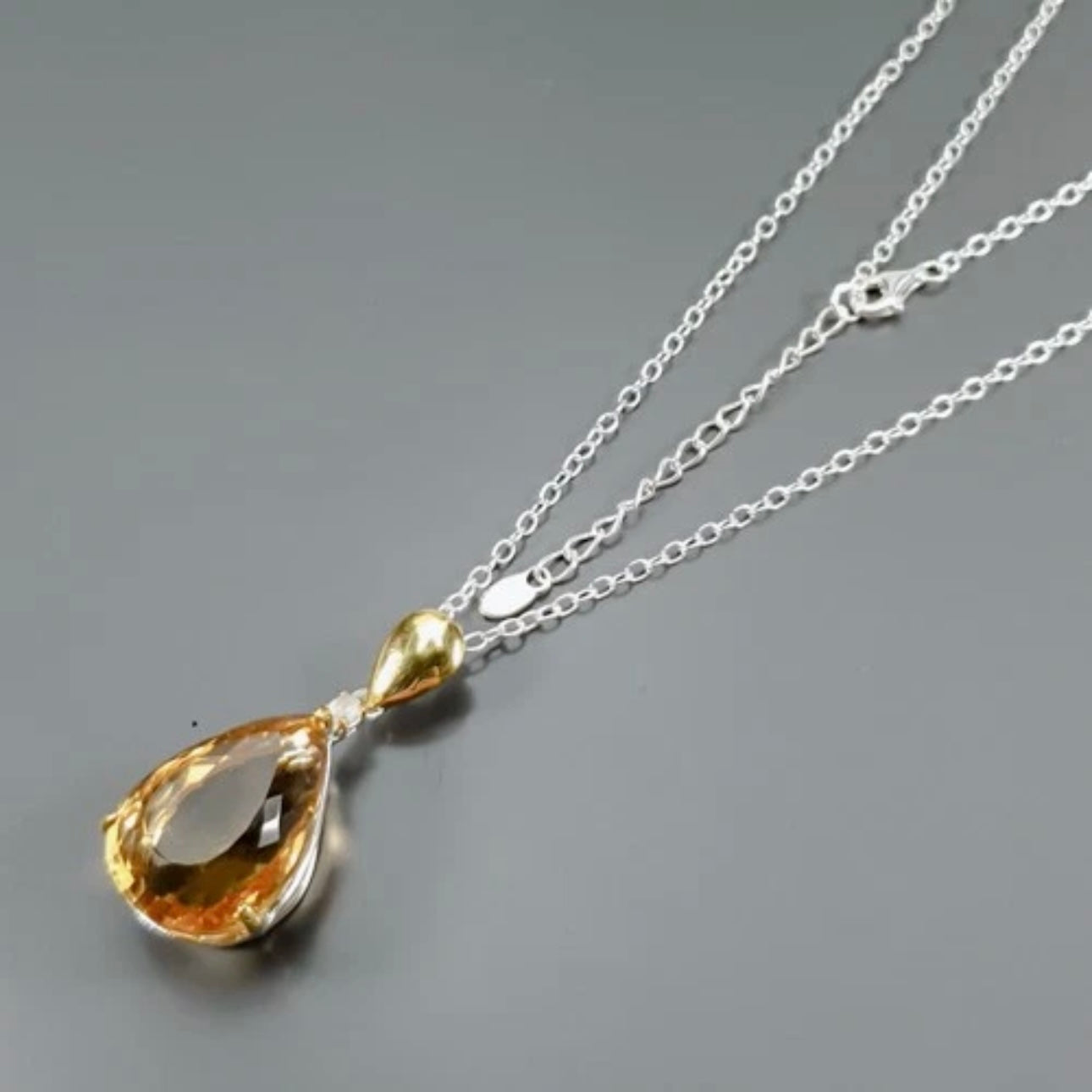 Кулон Цитрин с цепочкой, серебро 925