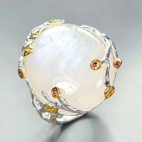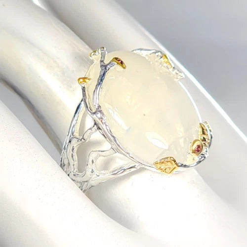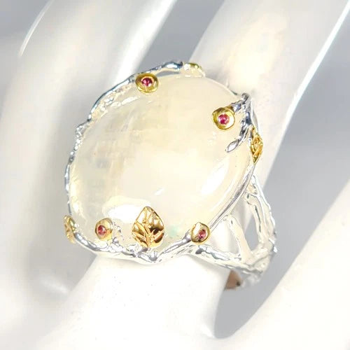 Серебряное кольцо с натуральным лунным камнем, 32 карата, вес 12.8гр, размер камня 25 на 20, размер 18.5, 925 пробы