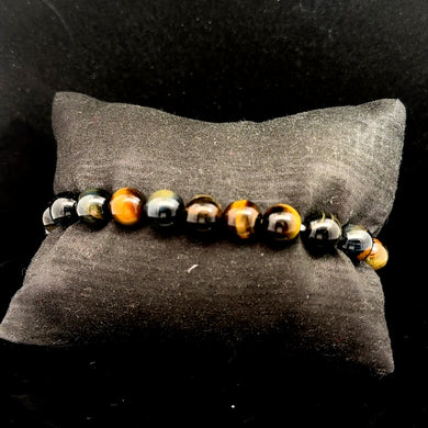 Браслет тигрово-соколиный кварцевый глаз, бусины 23 шт по 8 мм