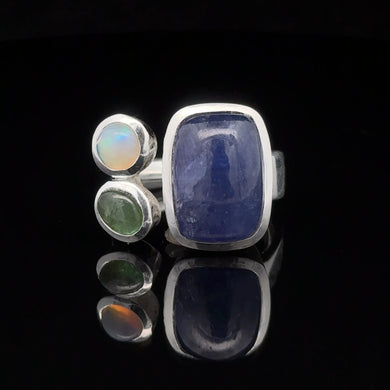 Кольцо Танзанит 15 мм на 12 мм , опал, хризолит 15 гр 19 размер; серебро 925