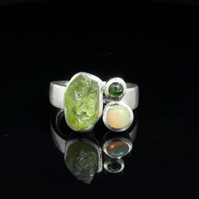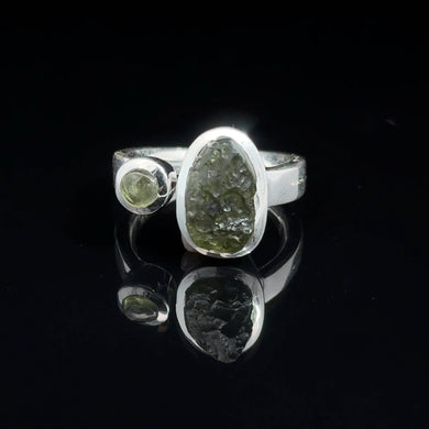 Кольцо Молдавит дикий и обработанный размер; серебро 925