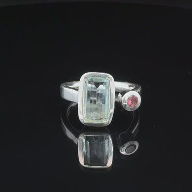 Кольцо аквамарин, турмалин 17,5 размер ; 7 гр камень 12 мм на 10 мм серебро 925