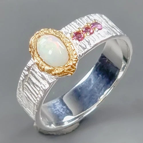 Кольцо Опал эфиопия 6x4мм ; 2.7 гр 16 размер ; серебро 925