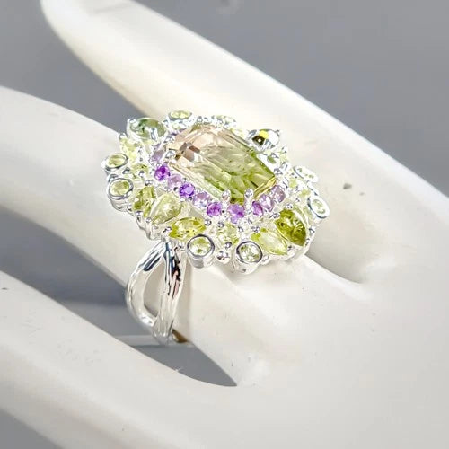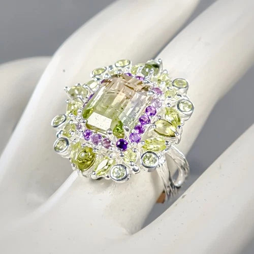 Кольцо Турмалин 10 карат 13*10мм Аметист Хризолит 12.1гр 18размер: серебро 925