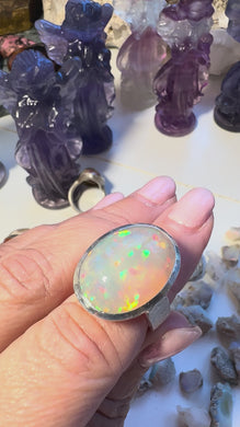Ring Opal Ethiopia, garnets size 16; silver 925
