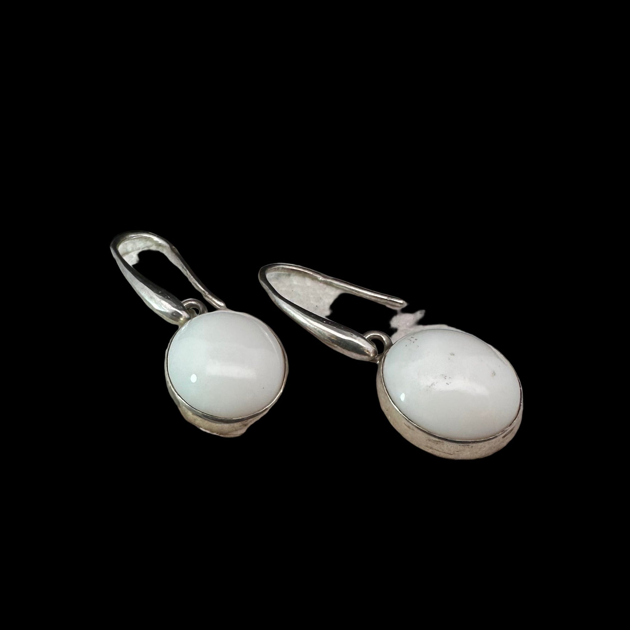 • Load image into Gallery viewer, Cacholong earrings, 29g, 35mm; 925 silver