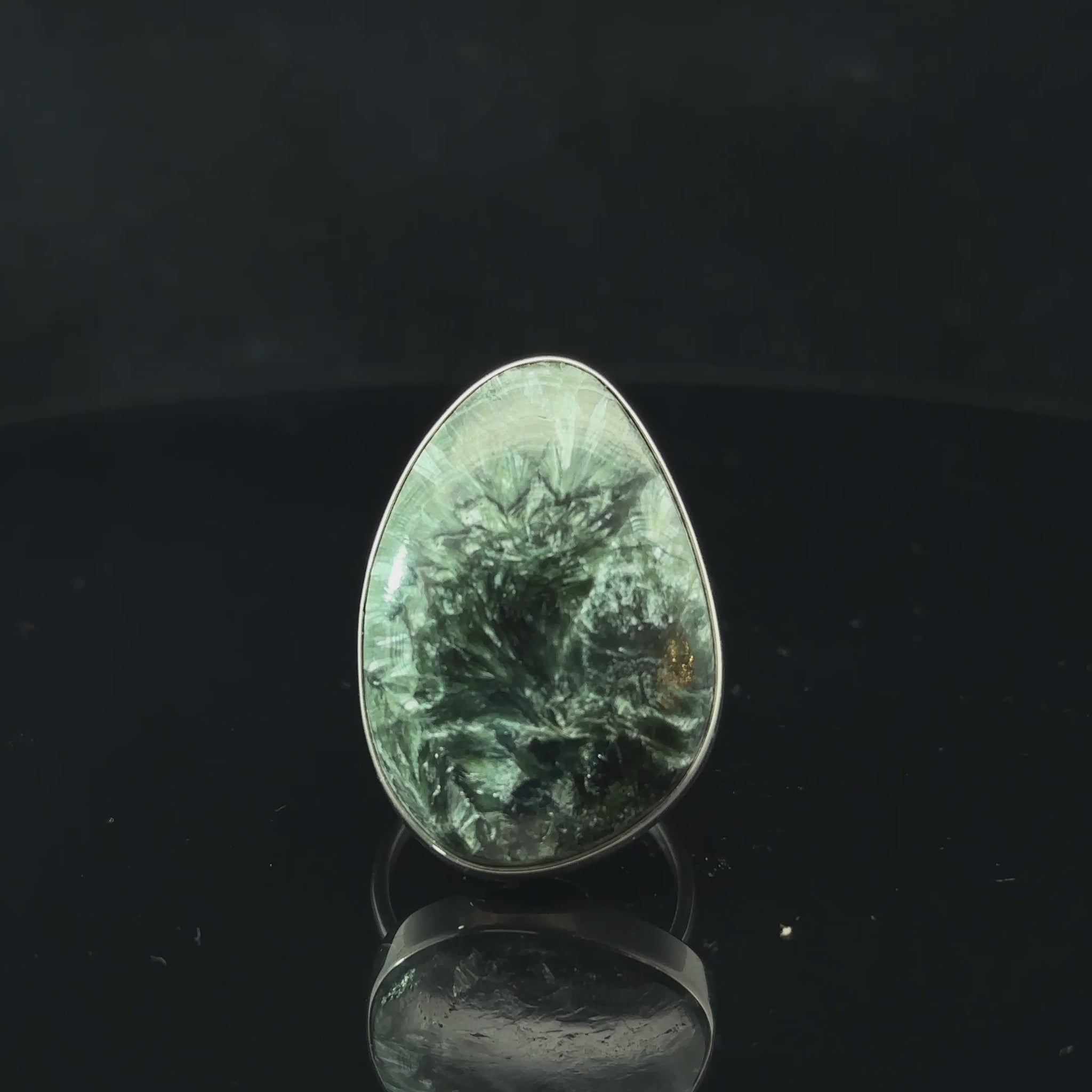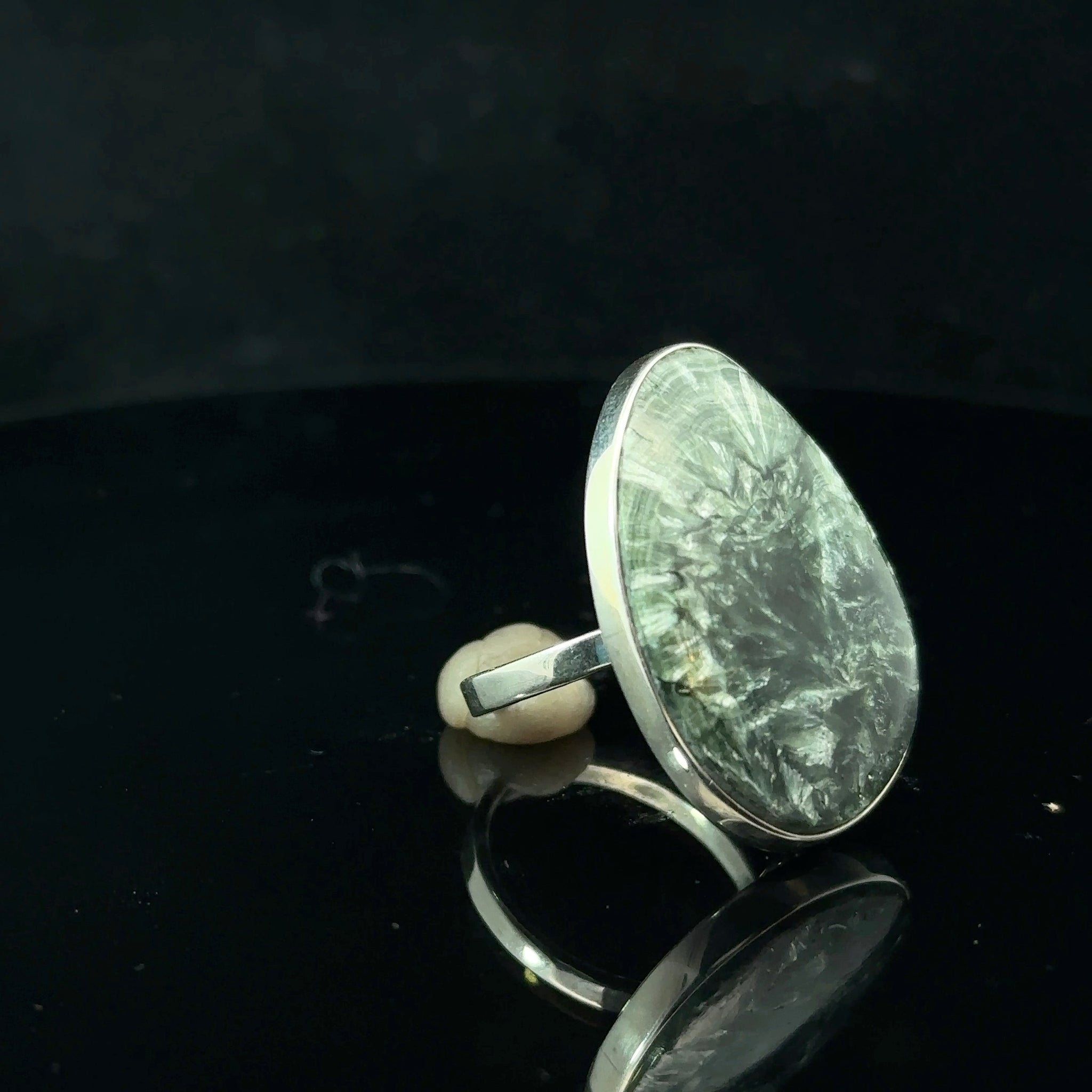 Seraphinite ring, 8 g, stone 20 x 30 mm, size 20.5; 925 sterling silver