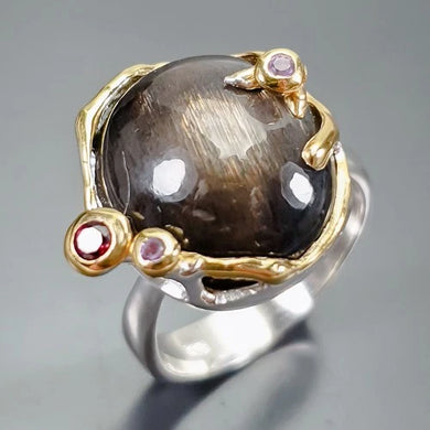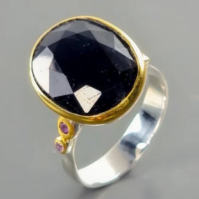 • Gredzens Safīrs melnā un zelta krāsā, 17. izmērs: sudrabs 925