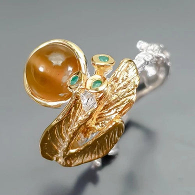• Apatīta zelta gredzens, 17,5 izmērs, 925. proves sudrabs