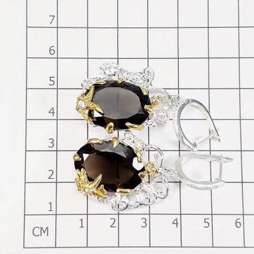 Серьги Кварц дымчатый 52*23*14мм 21гр: серебро 925
