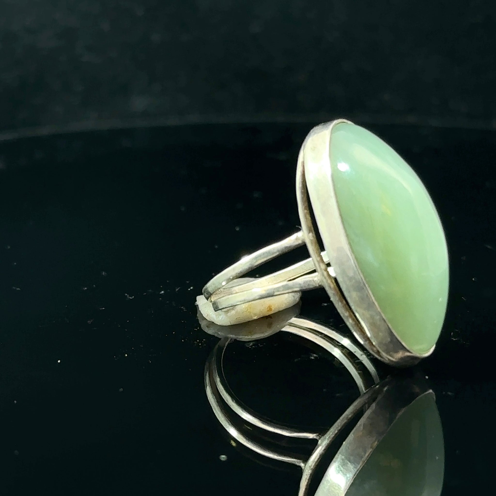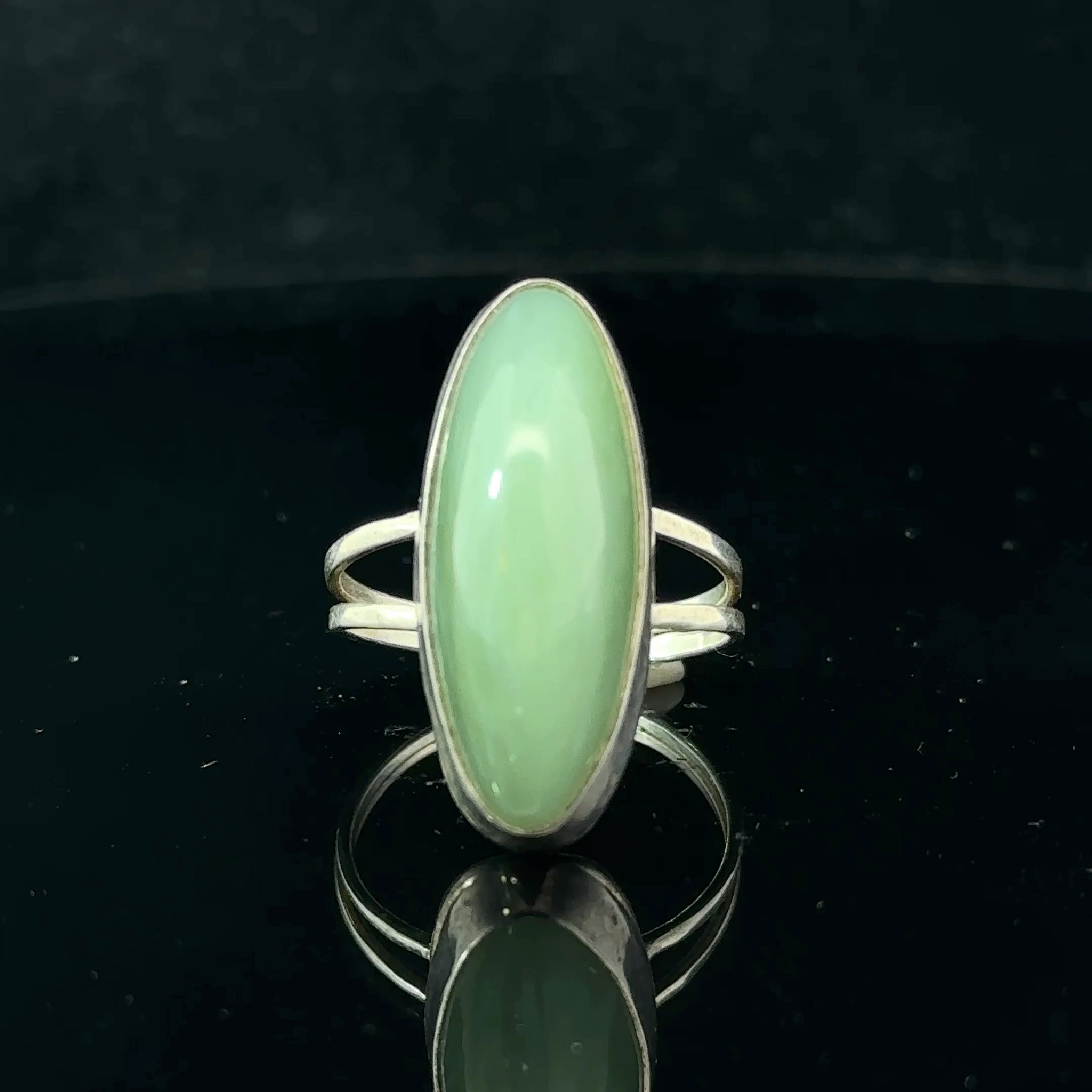Sajānija nefrīta gredzens, 18. izmērs, 6,3 g; akmens 8 x 25 mm; 925. proves sudrabs.